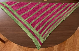 What a beautiful shawl-and those are some great winter colors. Everyone needs a pop of bright colors come January when everything looks so drab. I just bought the yarn for a bright pink cowl. Now I need to find the time and motivation to cast it on. I love that hat too. I'm very impressed that your stripes stayed so nice and stripey.
